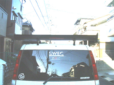ご存知のように私のステップのトレードマークの一つ、今まで装着しておりました、金属2枚羽の汎用GTウイングです。 |