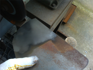 会社の裏に転がってたサビサビの鉄板を頂戴し(いらんやつやからエエよね(^^;))、これまた会社の工具を使わせてもらい(笑)(もちろん仕事中ちゃいますよ、休憩時間&定時後を利用して(^^;))。。。。 まずはこんな感じにカット。 |