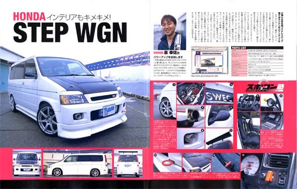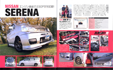 この方は取材は別で、顔見知りでは無いのですが、同じスポコン特集に掲載されていました、セレナにお乗りの里紗パパさんのマシンです。 なんとSR20DETに載せ替えられています!スポコンというより、まんまチューニングマシンで、かっこいいです! 里沙パパさんのHPはこちら |