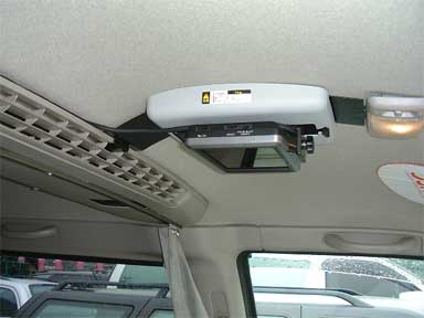 ダブルナットさんの、リアシート向けモニターです。手動の格納ですが、専用のステーなので、綺麗にフィットしてますね。すごい欲しい。。。(^_^;) |