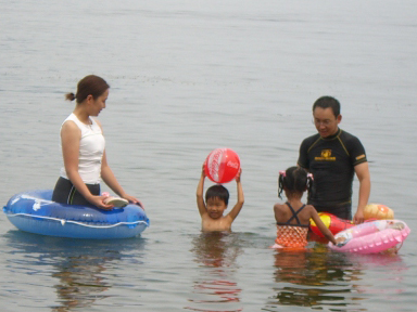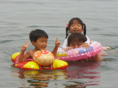 テントサイトからすぐ目の前で泳げるので、いいキャンプ場ですね。 |