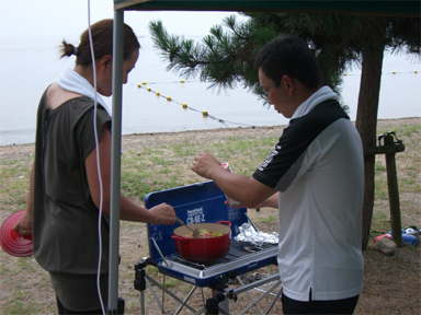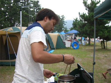 一人黙々と料理中なのははしぽんさん。哀愁すら感じさせます(^^;) |