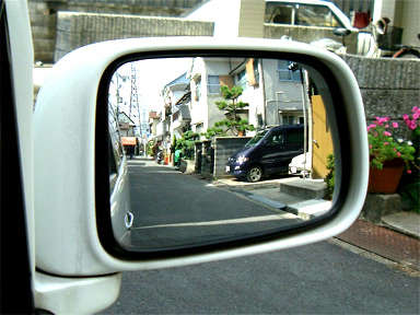 そして装着後。一応ワイドミラーということなんですが、カメラが固定ではないのでちょっとわかりにくいですね(^_^;) 無茶苦茶ワイド!という感じでもなく、純正とあまり変わらないような感じもしますが、逆に言えば湾曲による違和感もそんなにありませんでした。 |