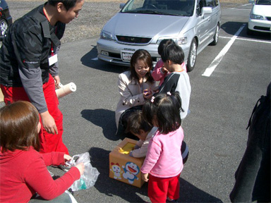 子供達も飴のつかみ取りでご機嫌♪ うちの娘も飴好きなので、喜んでおりました〜 |