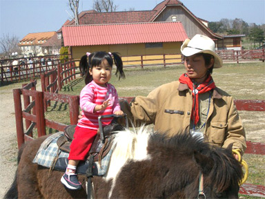 その後、昼過ぎまでは自由行動でしたので、ブルーメ園内で家族サービスしました。 先日岡山のドイツの森で馬を怖がってた娘ですが、今日は初めて乗り(ポニーですが(^_^;))、よほど楽しかったのか、もう1回乗ってました(笑) |