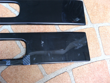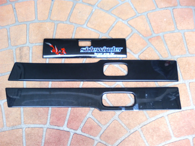 メーター周りはカーボンパネルとなっているのですが、さらに追加ということで、助手席の小物入れ部分と、両サイドのドア部分に貼るパネルをヤフオクにてゲットしました(既にsidewinderのステッカー貼ってます(^_^;))。 ところが。。。。 |