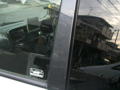 ヤフオクで、Gスクエア製のカーボンピラーガーニッシュを入手しました。 以前からピラーはカーボン化したく、このガーニッシュを買うかカッティングシートを貼るか悩んでたのですが、新品未使用で\5000即決でしたので、思わず落札してしまいました(^_^;) (しかし定価\16000もするんですね、こんなものが(^_^;)) |