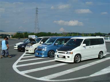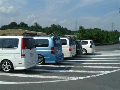 そこで、携帯でやりとりして、次のSA(山陽道の三木SA)にて集合しました。その後は順調に流れ(といっても山陽道も結構な台数が走行していました)、画像は山陽道の吉備SAで休憩中の関西組。 手前からKoh、kenkenさん、nonoriさん、ざいちゃんさん、ゆずぽんさんのマシンです(あとダブルナットさんもおられるのですが、家族サービスのため、一足先にチボリに行かれてます〜)。 |