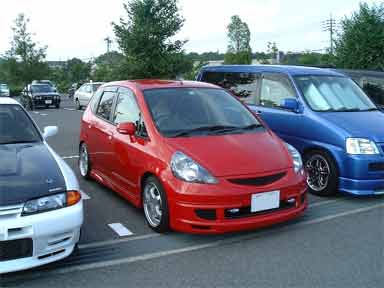 こちらは同じくステップワゴンもお持ちのむしさんのFIT。 メインは奥さん用なのですが、エアロも付けたらホイールも入れたい、ホイールも入れたら車高調も。。。とあれよあれよという間に完璧なマシンに(^_^;) |
