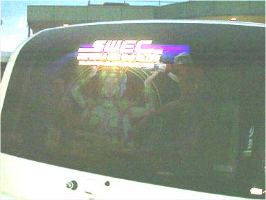 こちらはたまっちさんのリアガラス(^_^;) ちょっとわかりにくいですが、アニメ”コブラ”の絵がブラックライトで浮かび上がります。 現在ここベニーで大改造中です。出来上がりが本当に楽しみですね(^_-)-☆パチッ) |