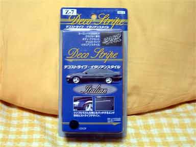 デコラインを購入しました。イタリアンスタイルと書いてますが???(^_^;) 色はガンメタです。 中身はデコラインと位置決め用のマスキングテープ、そしてスキージーです。 |