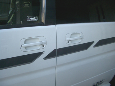 そんな時今年の5月頃、たまたま2車線の国道を走行中、私の似非スピーデ ィーとは違う(笑)、同じタフタホワイトの本物のスピーディーが横にいました。 「塗装したのかな!?」とも思ったのですが、完全ドノーマル のおじさん運転だったので、そんなことしそうに無い感じ。。。 あとで調べたらスピーディーのドアハンドルってボディと同色ということが判明! 長年ステップ乗ってきて今まで知りませんでした(;^_^A アセアセ・・・ ということでスピーディー用のドアハンドルでホワイトかブラック(そこだ け全部ブラックでも良いかなと思ってたので)を購入検討することに。 |