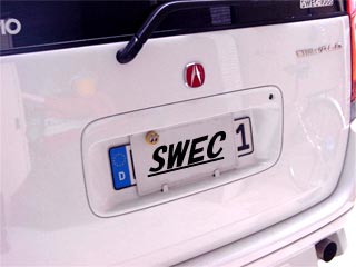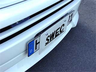 リアは3分割して両端だけを装着し、いかにも裏でつながっているようになっています。 以前かリアのユーロナンバーって封印がしているのに装着している人はみなさんどうやってるのかなって疑問だったのですが、SWECメンバーのともきさんのページを見て納得しました(^_^;)。 |
