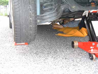 nonoriさんが持ってきてくださった、3tジャッキとウマをお借りして、作業開始です。体制がしんどい〜(^_^;) |