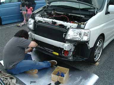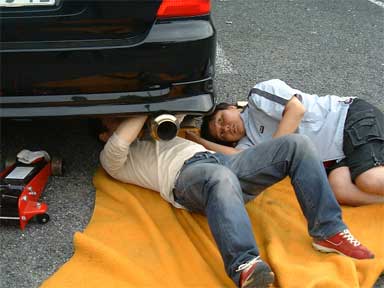 本日nonoriさんは、またまたフロントバンパーを外し、フォグの球を交換されています。 今回は彼女もお手伝いされていて、仲良く作業されてました〜(いいな〜(^_^;)) |