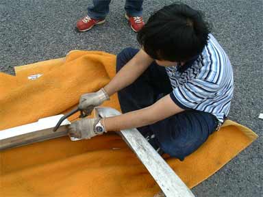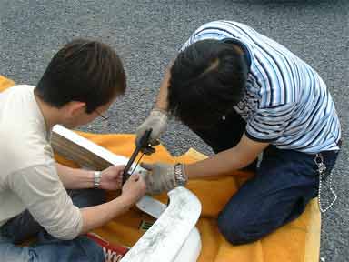 結局ジャッキアップして、ここで本日大活躍のたみちゃんさんが登場(^_^;) なんとか外せました。 |
