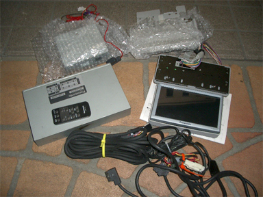 そんなときヤフオクで発見したのがこれ。 モニター自体はPanasonicの6.5インチなんですが、それを専用品として用いて、電動フリップダウンモニターとして販売しているサエキエンタープライズ社のキットです。 何度かヤフオクで流れた商品ですが、出品者様に無理言って直接売って頂きました(^_^;) (少しまけて頂き、26500円で購入) |