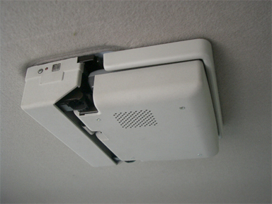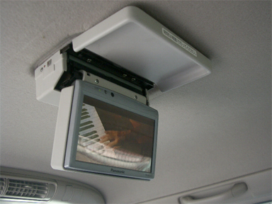 以前装着しました3列目向けのフリップダウンモニターです。 これの難点はモニター電源のON/OFFを本体のスイッチを押さなくてはならず、毎回エンジン始動後面倒なところです(付属でリモコンも付いてますが、運転席からだと反応が。。。)。 それに最近映像が消えたり、ちらついたり調子が悪いので、買い替えたいと思ってました。 |