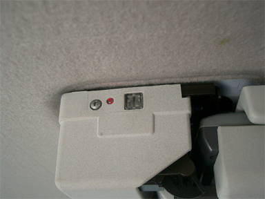 モニター横のスイッチ(赤ランプの右にある四角いスイッチ)を押すと電源が入りモニターが降りてきます。 で、またそのボタンを押すと角度調整が出来ます。また手動ですが左右の角度調整も出来ます。 さらにこのスイッチを長押しすると電源がOFFになり、モニターが格納されます。 |