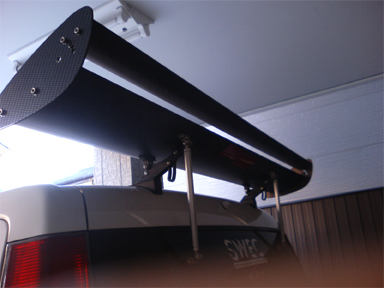 すみません、ネタが無いので小ネタです(;^_^A アセアセ・・・ 私のGTウイングは2枚羽根なのですが、間隔が狭くせっかくの2枚がわかりにくいうえ、上の羽根が下の羽根に当たってしまうこともあり、真ん中にブサイクですがクッションを挟んでます(画像でちょっと見えますね(^_^;)) |