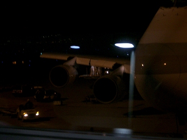 なんと右翼のエンジンにトラブルがあるとかで、修理?部品交換?している真っ最中(爆)