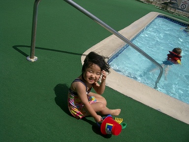 到着したてなのに、娘は早速バニアン内のプールへ(^_^;) |