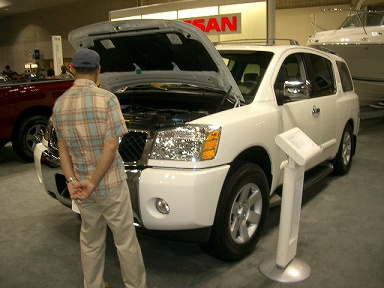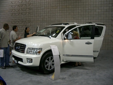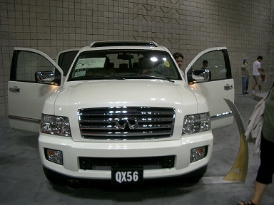 この後、スバルのブースで日本には無いSUV見てたんですが、そのスバルの担当者(外人のおばちゃん)が寄ってきて、「このデザインは〜」「馬力は〜」とか説明してくれましたが、じぇんじぇんわかりません(笑)