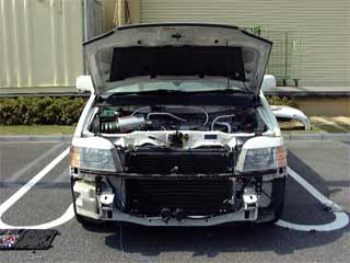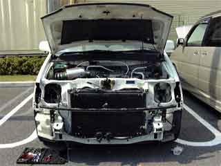 そしてヘッドライトも取り外し。。。 なんか骸骨みたいになっちゃいました(^_^;) 作業は某電気店の駐車場(かなり広い)で行いましたので、買い物客の方々はみんな引いてました(^_^;)。 |
