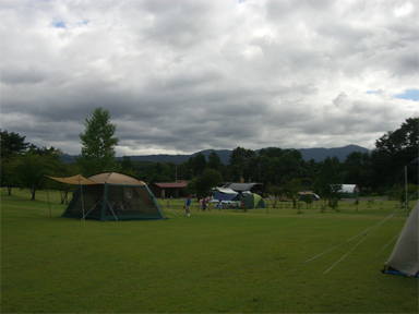 私たちのサイトはこんな感じ。 ここのキャンプ場は区画が無く、空いてるところに自由に設営できます(^^;; |