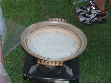 むしさんは土鍋でご飯炊き。 ええ感じの炊き具合♪ |
