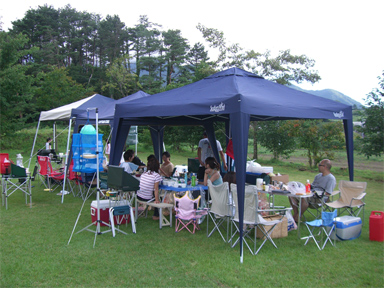 こうして美味しい食事とウマいお酒と共に夜は更けていきました(^^;) 高原で夜は寒いと思ってたのに、長袖系を忘れた私は、「やばい。。。オヤジタイム耐えられないかも」と心配してたんですが、意外にも寒くなく、ちょうどええ感じの気温でした♪ |
