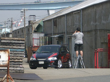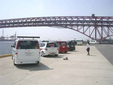 普段なかなかHP用などに使用するいい写真が撮れない。 撮っても外観の仕様変更などでまた新しい画像が必要ということで、たろやんさんの呼びかけで、雑誌などの撮影でよく使われる、天保山の埠頭で自己撮影会をしようということになりました(^_^;) |