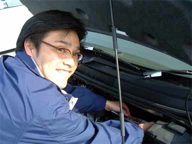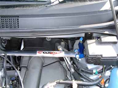 本日のメイン作業(^_^;)。 みんみんさんのマシンにクスコのタワーバーを装着中。NOSEさんがてきぱきと作業されています。 |