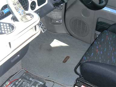 これは買った時から敷いている、純正フロアマットです。右足のかかと部分も結構くたびれてきました。 |