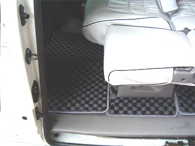 ちょっと暗くて見にくいですが、セカンド部分です。 手前の補助席部分のマットとセカンド足下部分がずれてますが、何故かこの部分と運転席マットのところの固定するボタンが付いてませんでした。。。他は付いてるのですが。。。不良品でしょうね(^_^;) まあボタンぐらいはあとで購入して付けようと思ってます。 |