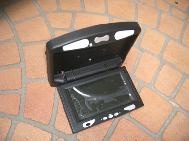 そこでもう1つ手前にフリップダウンモニターを狙ってました。 そんなとき、いつもお世話になっているkamechanさんがちょうど購入されたのですが、うまく天井にフィットしないとのことで安く譲ってくださいました\(^o^)/ 画面は8インチです。 |