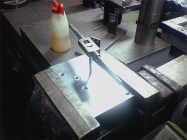 その後は穴開け、タップ切り、シャーリングによる角落としは自分でやりました 久しぶり加工も楽しいですね(大した加工じゃないですけど(;^_^A アセアセ・・・) *この画像は携帯で撮影 |