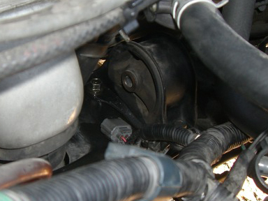 下から見た、その穴です。2本出ているのがMTのシフトケーブルです。 このおかげで作業時間が大幅に短縮出来ました。 |