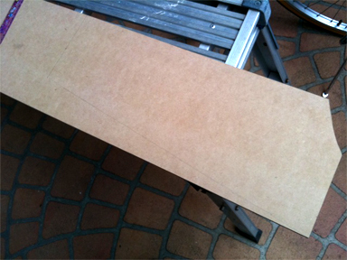 ※後日談 コンソール周りが剥き出しですので、台座を作成致しました。 MDFに形状のラインを引いて、ジグソーでカットします。 |