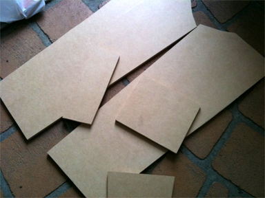 ←こんな具合に各パーツにカット。 脚立の上で木材カットしてましたが、日曜大工してる感じですね(^^;) |