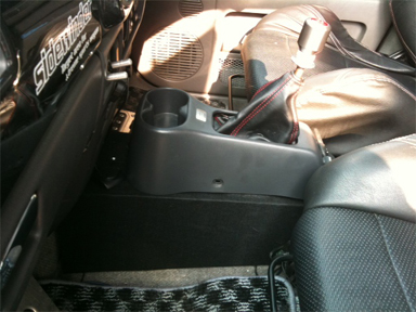 ひとまず完成。 以前から購入済みのライフ純正のコンソールを上にドッキング。シフトブーツはSerabyさんが装着していた赤ステッチのブーツに変更してみました。 |