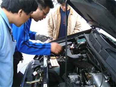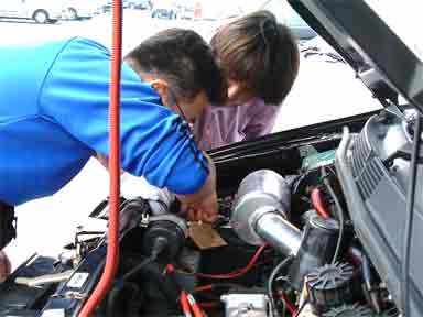 こちらはマジックさんのマシンです。 セキュもほとんど入れ替え、今回はα2000の進化版!?オペラを装着されていました。 エンジンルームを覗き込んで、今度は何を企んでいるのかな?(^_^;) |