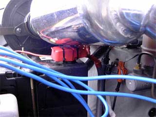 上の画像で少しは隙間があるのですが、ボンネットを閉めると、パワーフローが当たって下に押され、結局接触しているようなので、さらに保護のため、プラスチック端子カバーの上から、もともと付いていたビニール製のカバーを被せました。 さらにこの後、バッテリーによる対策を施しました。詳しくはこちら。 |