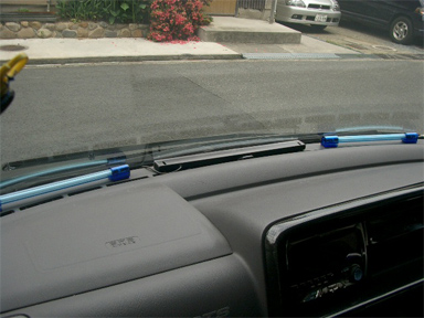 フラッシャーは表から見るとこんな感じ。窓に景色が映り込んでわかりにくいですが、ETCのアンテナがあったので、少しそれをずらしました。 |