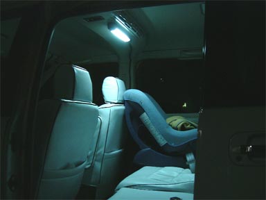 後部座席上部のルームライトは運転席からONにするのには非常に遠いので何とかしたいと思っていました。 で、M相良さんのページで紹介されている手元で操作出来るスイッチを考えていたのですが、ヤフオクでリモコン操作出来る蛍光灯があったので落札しました。 まっ、装着も簡単だったということもありますが(^_^;)。 |