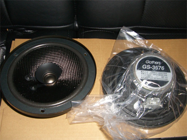 同じくGathersのカーボンスピーカーGS-3676が500円(こちらも当然新品)とこれまた激安でしたので、これをリアスピーカーと交換します。 |