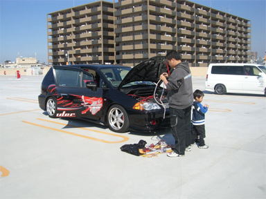 とりあえずみんみん号(爆) (←これじゃあ誰のかわからんな。。。) お譲りしたストロボの装着は普段ほとんど使用しないフォグランプ位置に決定し、バンパーを取り外しておられます。 |