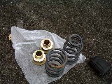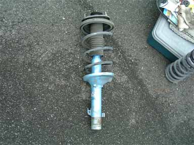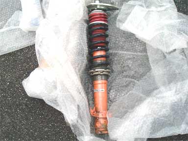まずは比較的交換作業の楽なリアから。 画像は今まで装着してましたHKSのサスとKYBのショック(NEW SR スペシャル)です。 |