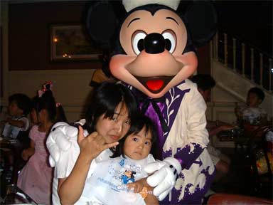 そして、念願のミッキーとの写真も撮れました。でもちょっと顔が固まってますが(^_^;) |