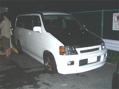 ん!?私のマシンにそっくり(^_^;) こちらはたつげんさんのマシンです。Tukaさんから譲って頂いたカーボンボンネット(私のと同じです(^_-)-☆パチッ)を装着されています。初期の無限のマフラーを装着されていて、音は静かですが、W出しで、渋いです。 |